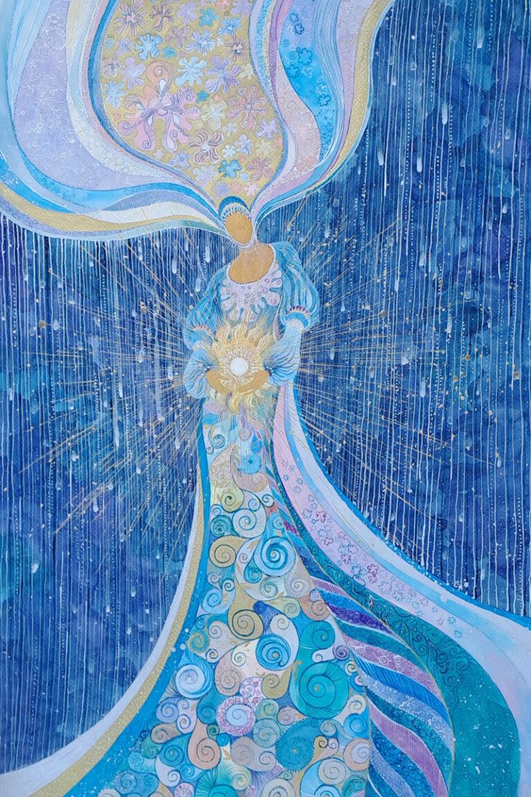 Keywords: Elaria, Cascade of Miracles, contemporary art, abstract painting, light and colour, modern artist, spiritual art, transformation, luminous art, energy of creation, visual poetry, art series